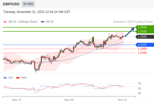 在 1.2475 之上,看涨,目标价位为 1.2525 ,然后为 1.2540 。