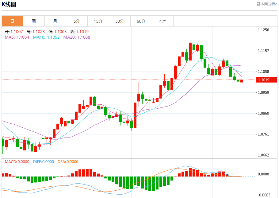 汇价高见1.1023,低见1.1005。上一交易日,汇价收于1.1012。