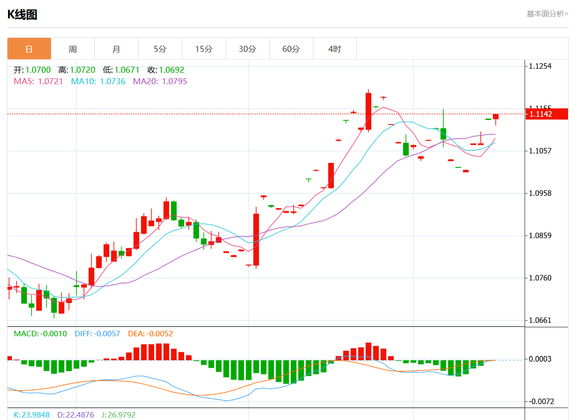 周二欧市盘中,欧元/美元最新报1.1138,日图涨0.05%。