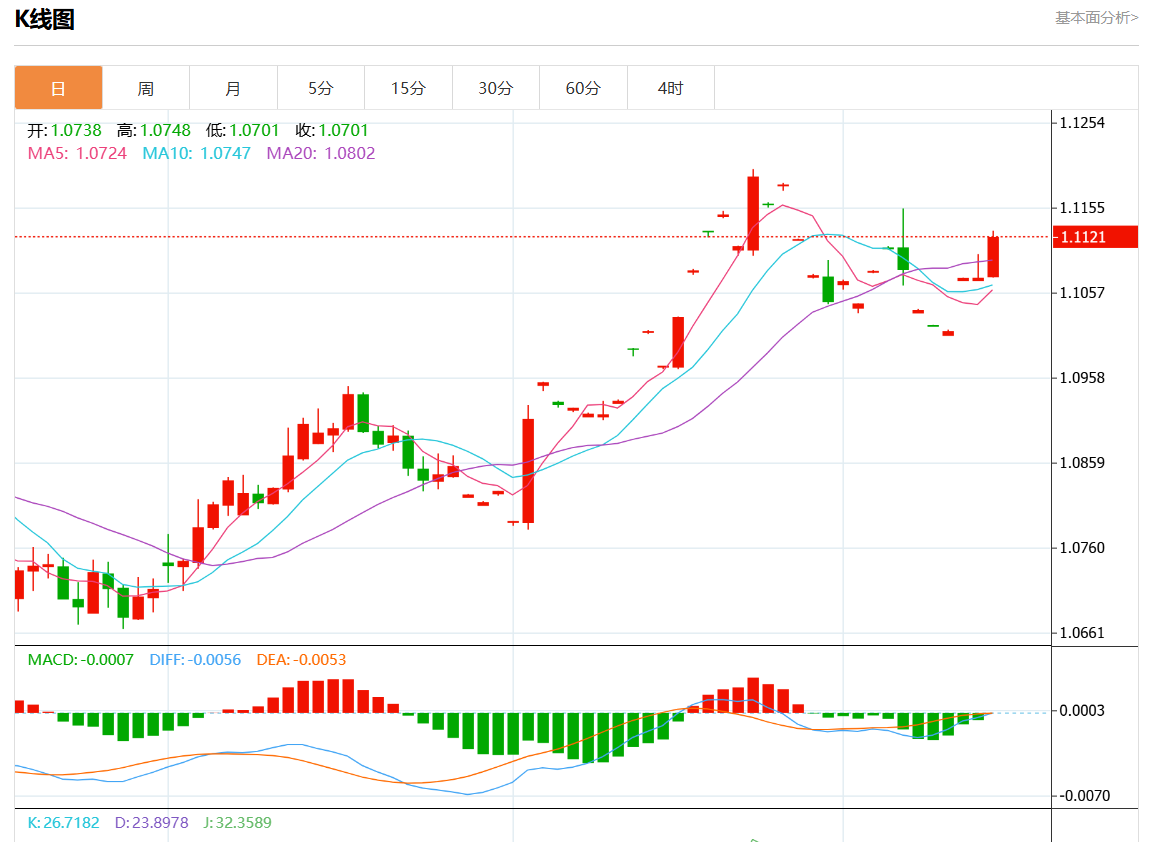 周一欧市盘中,欧元/美元最新报1.1145,日图涨0.45%。
