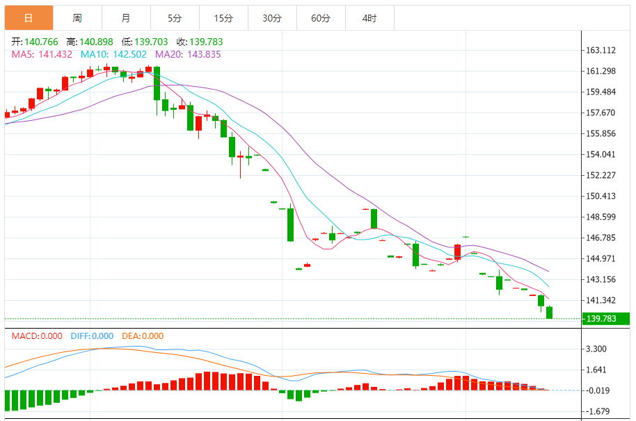 周一(9月16日),美元/日元下跌139.802,暂报139.785,跌幅0.77%。