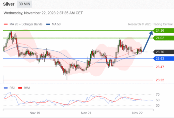 在 23.63 之上,看涨,目标价位为 24.02 ,然后为 24.16 。