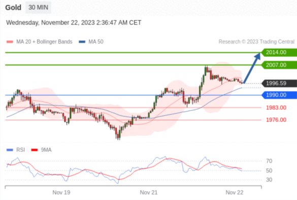 在 1990.00 之上,看涨,目标价位为 2007.00 ,然后为 2014.00 。