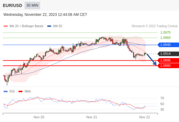 在 1.0940 之下,看跌,目标价位为 1.0895 ,然后为 1.0880 。
