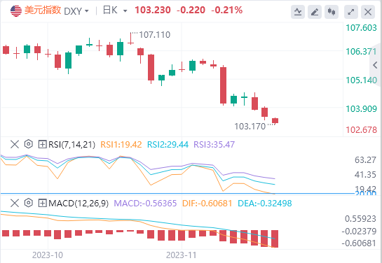 因投资人普遍认为美联储已完成加息周期,并对何时开始降息感到期待,美元指数重挫至两个月低点。