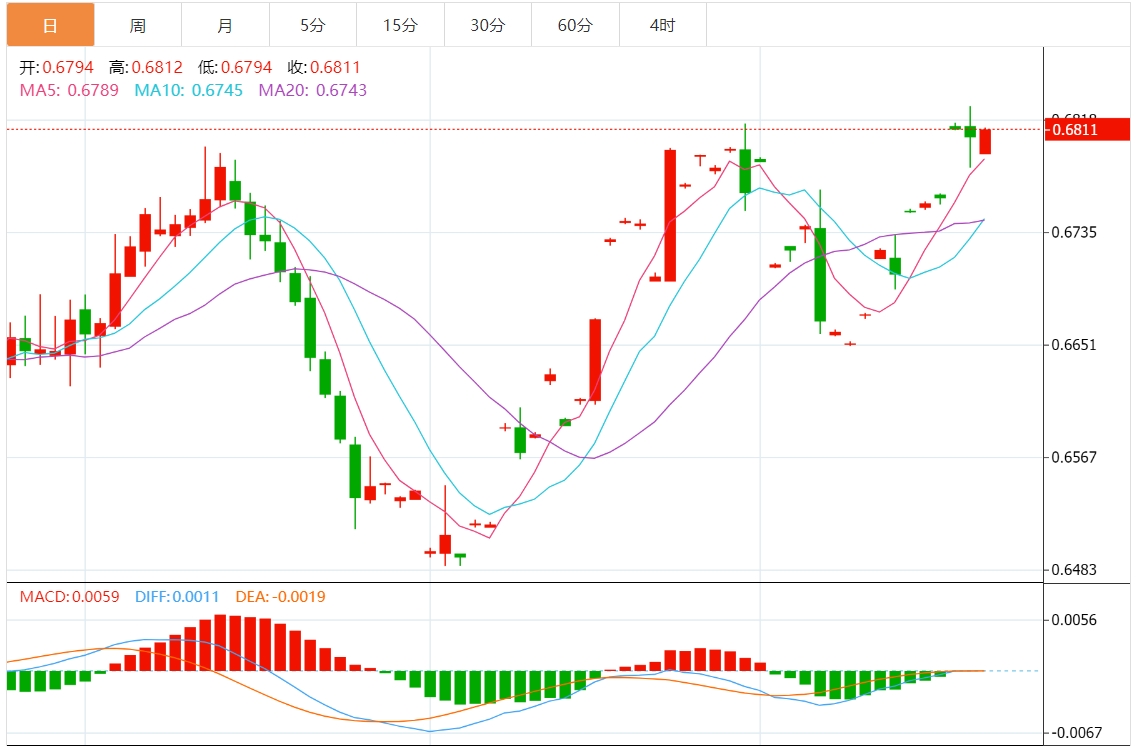 技术分析:澳元仍位于 0.6800 上方,试图重返上升通道