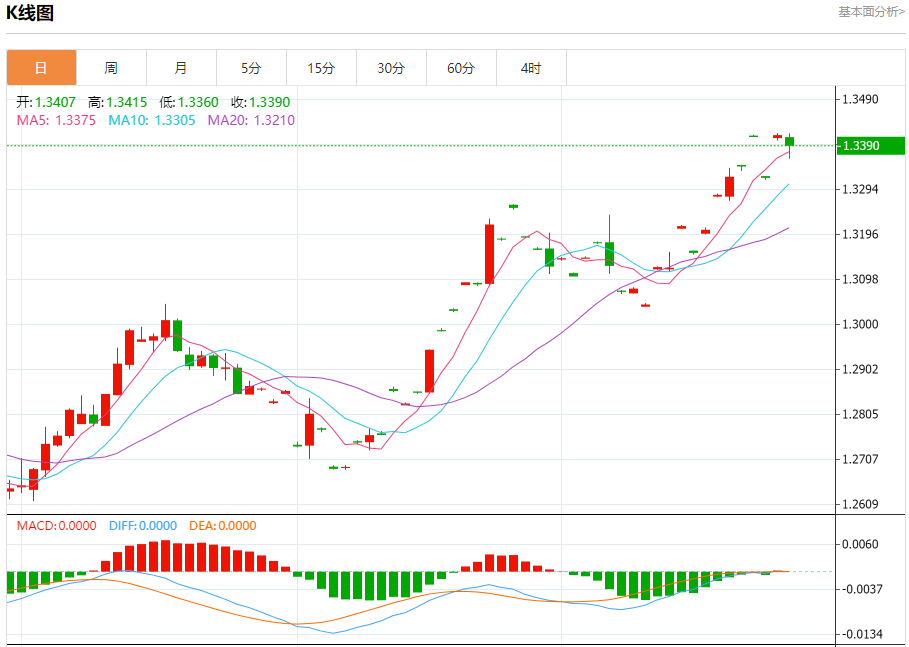 汇价高见1.3415,低见1.3359。上一交易日,汇价收于1.3415。