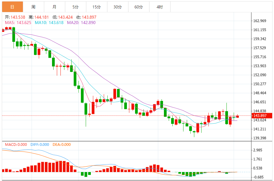 周三(10月2日),美元/日元上涨143.920,暂报143.912,涨幅0.26%。