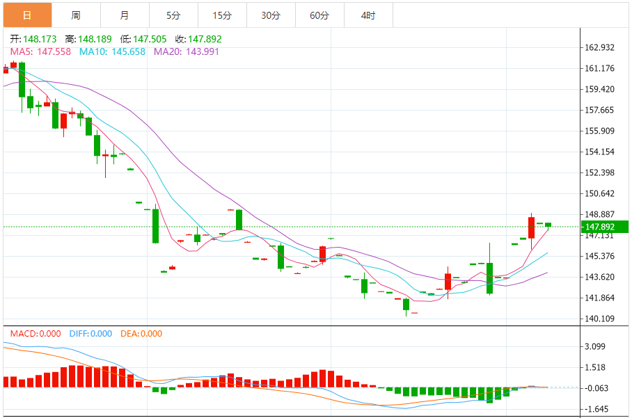 阻力位:148.17 148.24 148.36