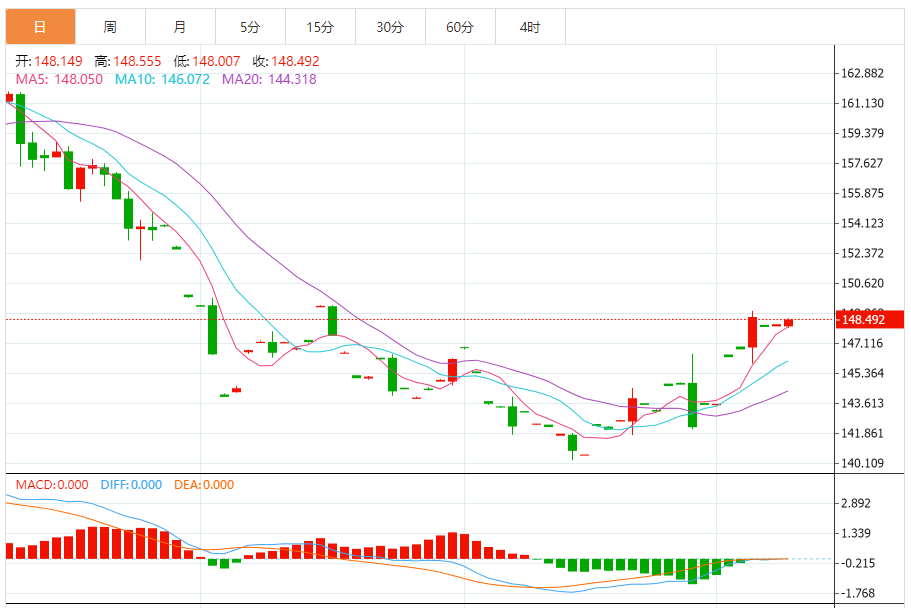 周三(10月9日),美元/日元上涨148.502,暂报148.506,涨幅0.21%。