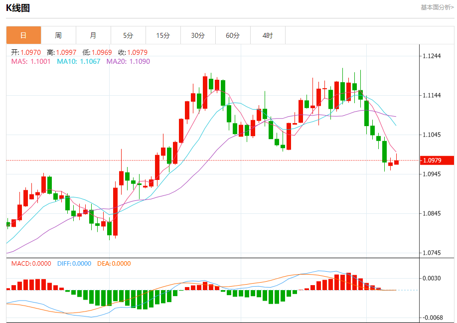 汇价高见1.0997,低见1.0969。上一交易日,汇价收于1.0974。