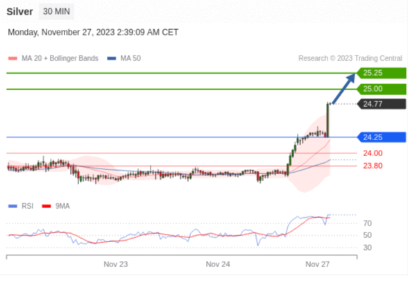 在 24.25 之上,看涨,目标价位为 25.00 ,然后为 25.25 。