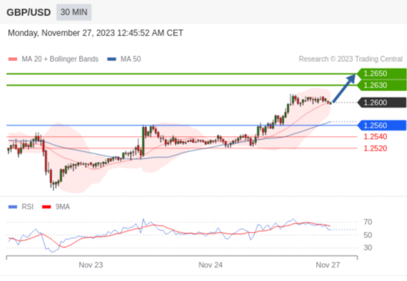 在 1.2560 之上,看涨,目标价位为 1.2630 ,然后为 1.2650 。