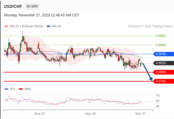 在 0.8835 之下,看跌,目标价位为 0.8805 ,然后为 0.8790 。