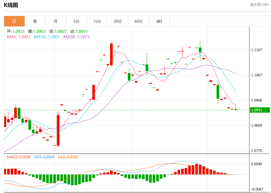 汇价高见1.0953,低见1.0927。上一交易日,汇价收于1.0936。