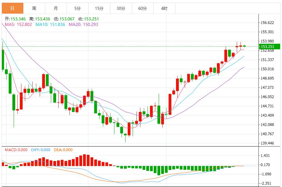 阻力位:153.43 153.50 153.62
