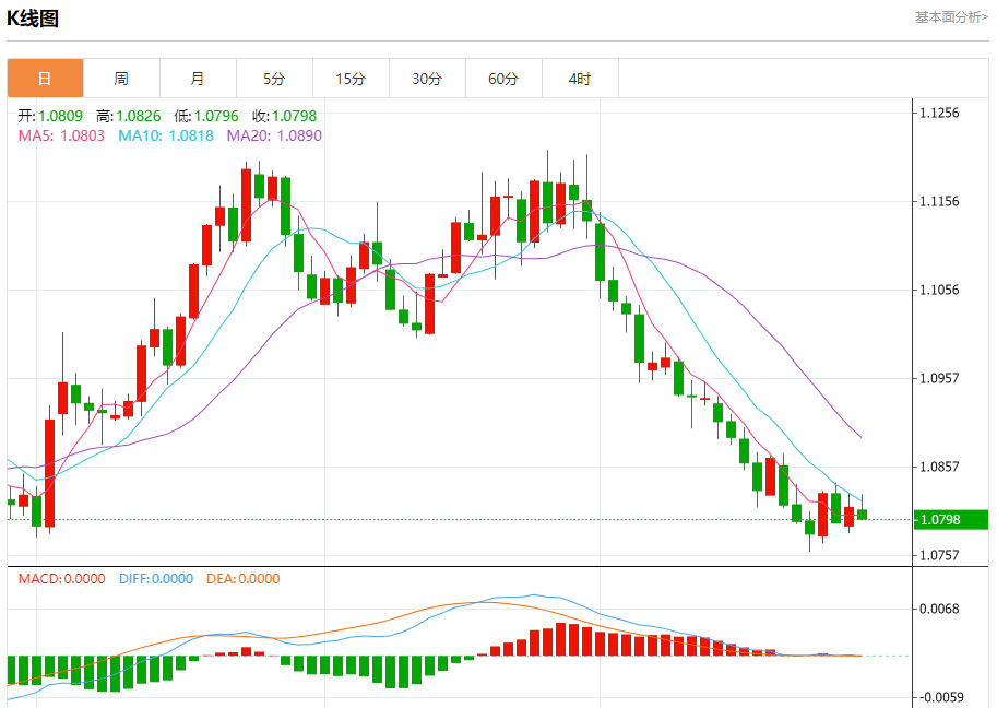 汇价高见1.0826,低见1.0796。上一交易日,汇价收于1.0812。