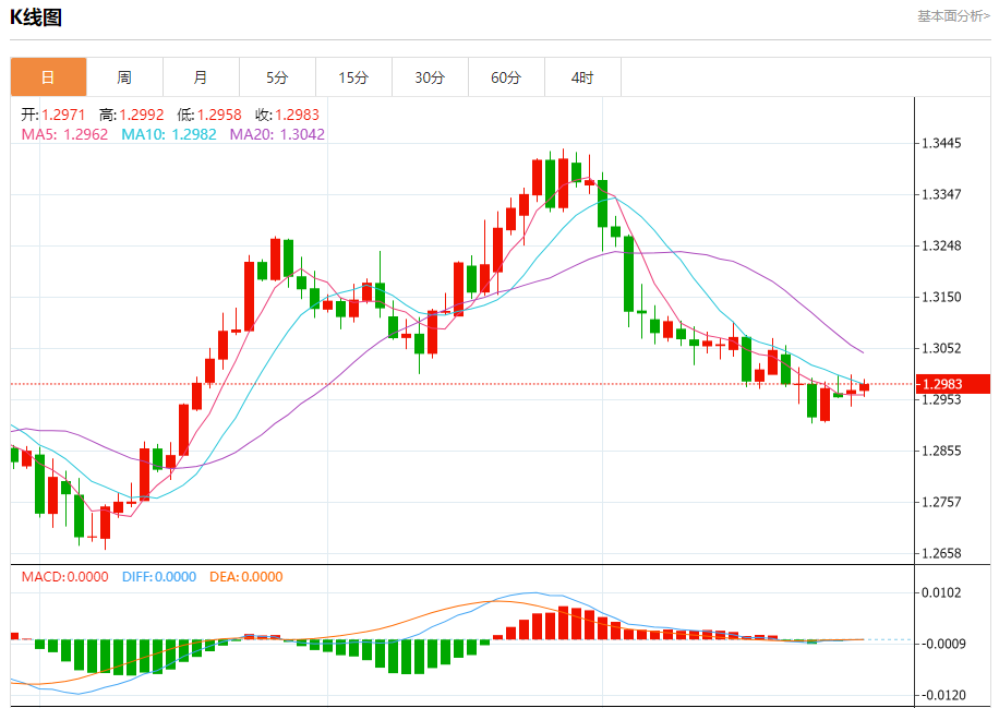 汇价高见1.2992,低见1.2958。上一交易日,汇价收于1.2971。