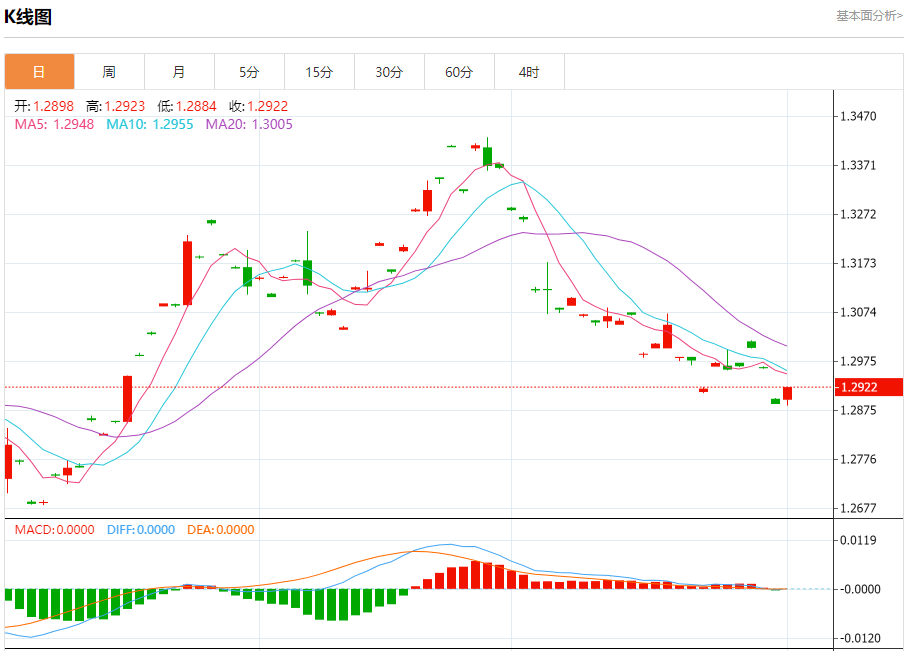 汇价高见1.2923,低见1.2884。上一交易日,汇价收于1.2898。