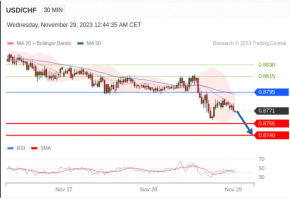 【XM交易平台】2023年11月29日亚盘交易建议:黄金、白银、欧元、英镑、日元、瑞郎交易点位技术分析及预测