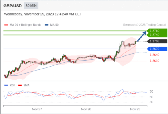 在 1.2670 之上,看涨,目标价位为 1.2740 ,然后为 1.2760 。