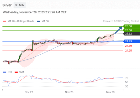 在 24.73 之上,看涨,目标价位为 25.30 ,然后为 25.50 。