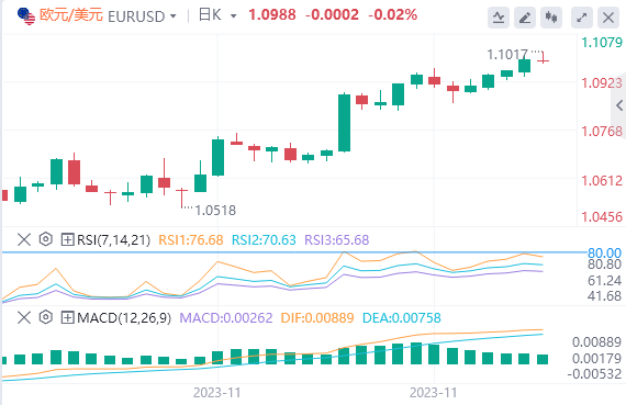 美元指数下跌0.11%,报102.65,眼下面临的支撑位是102.46(11月29日的月度低点),然后是101.74(8月4日的月度低点)和100.51(7月27日的周度低点)。上行方面,突破103.59(200天均线)将打开通往104.21(11月22日周高点)和105.51点(55天均线)的大门。