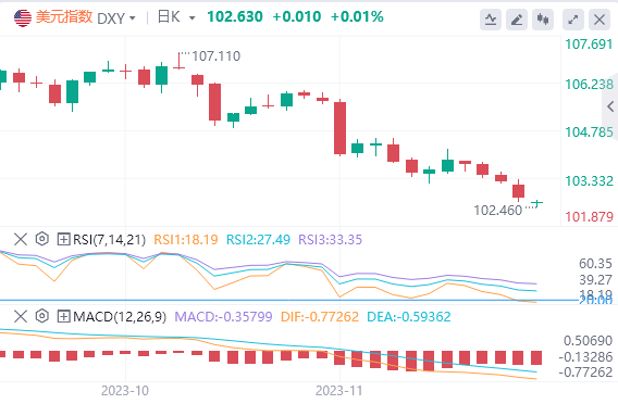 美元指数周二重挫0.42%,至102.77,为8月31日以来最低收市水平。美元指数11月跌幅预计将超过3%,创2022年11月以来最糟单月表现。