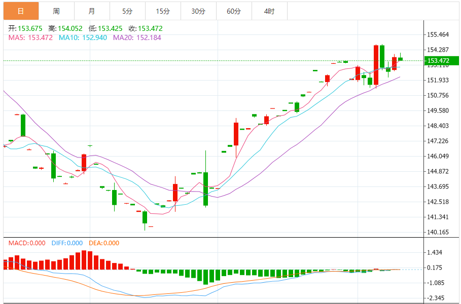 周二(11月12日),美元/日元下跌153.479,暂报153.470,跌幅0.16%。