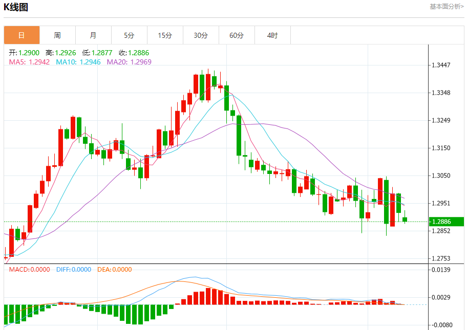 汇价高见1.2926,低见1.2877。上一交易日,汇价收于1.2918。