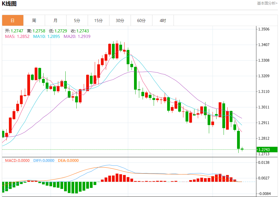 汇价高见1.2758,低见1.2729。上一交易日,汇价收于1.2747。