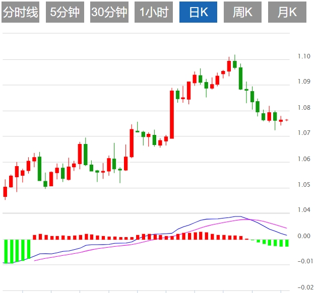 日图在1.0750一线收录十字星阴线,显示该档存在一定支持,随机指标回到中性区域倾向走高。4小时图在下影线上方整理,整体反弹动能不强。小时图整体波动有限,仍处于MA100下方。
