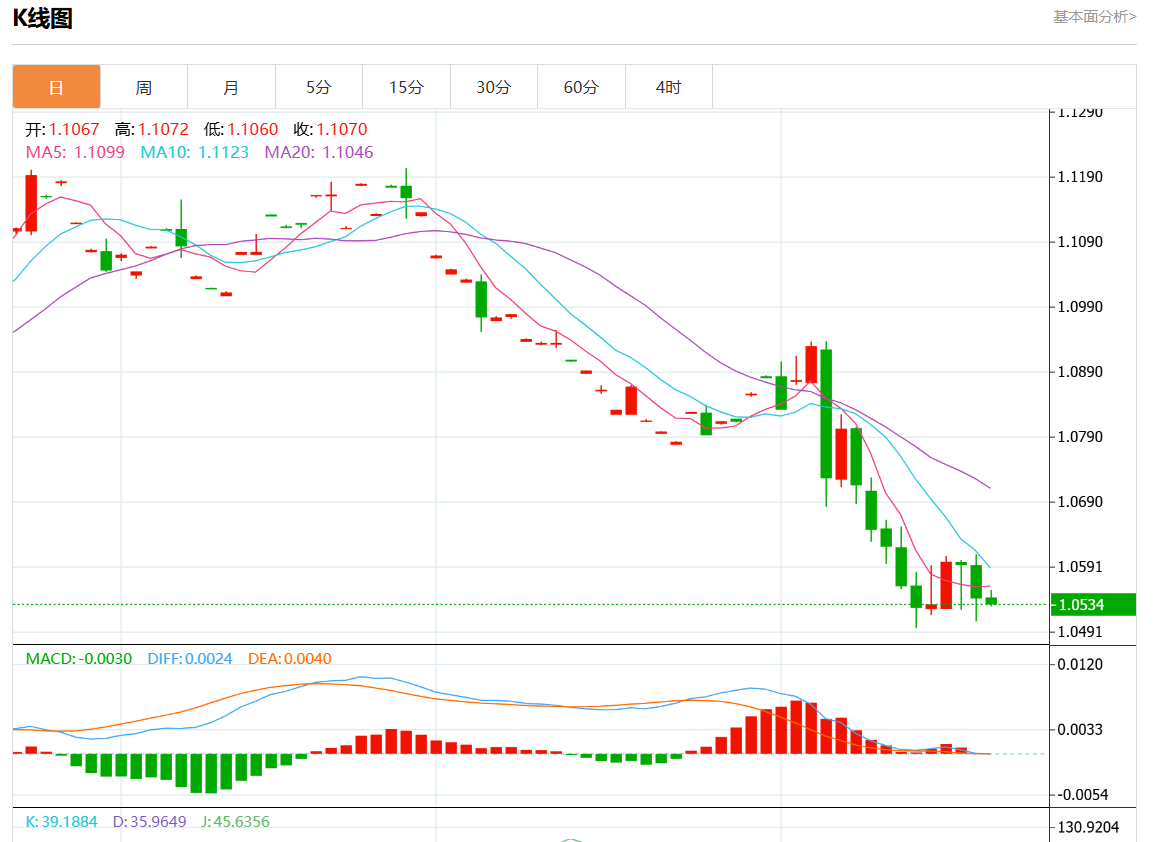 周四欧市盘中,欧元/美元最新报1.0537,日图跌0.06%。