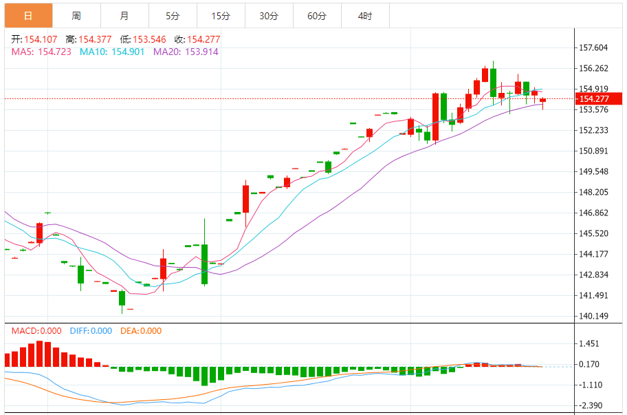 阻力位:154.20 154.30 154.43