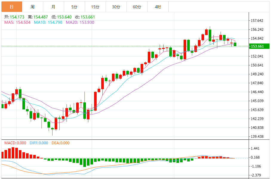 支撑位:153.46 153.57 153.71
