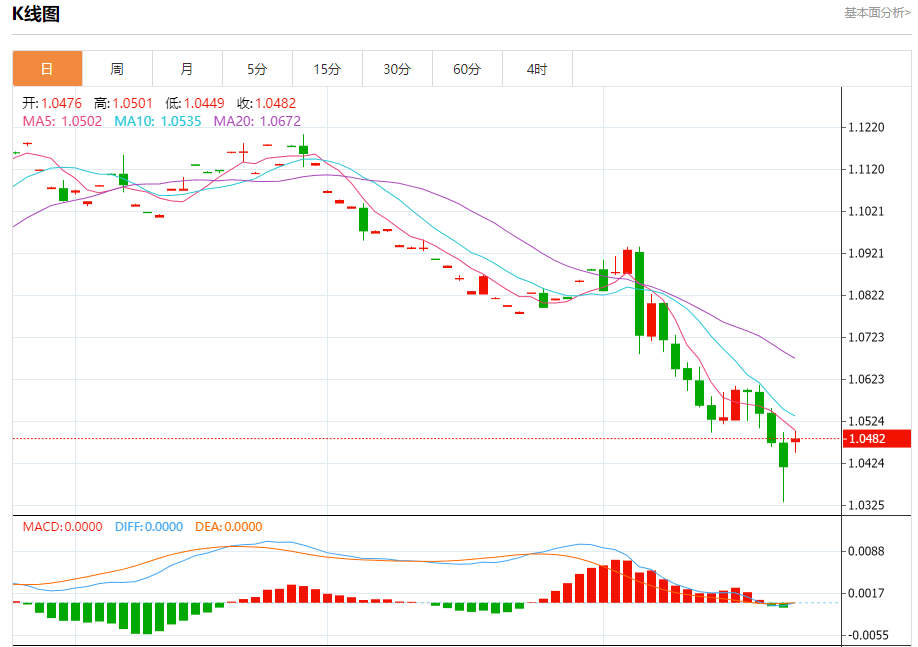 汇价高见1.0501,低见1.0449。上一交易日,汇价收于1.0417。