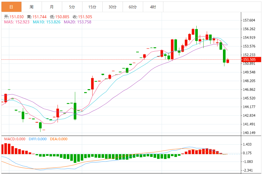 周四(11月28日),美元/日元下跌151.506,暂报151.483,涨幅0.27%。