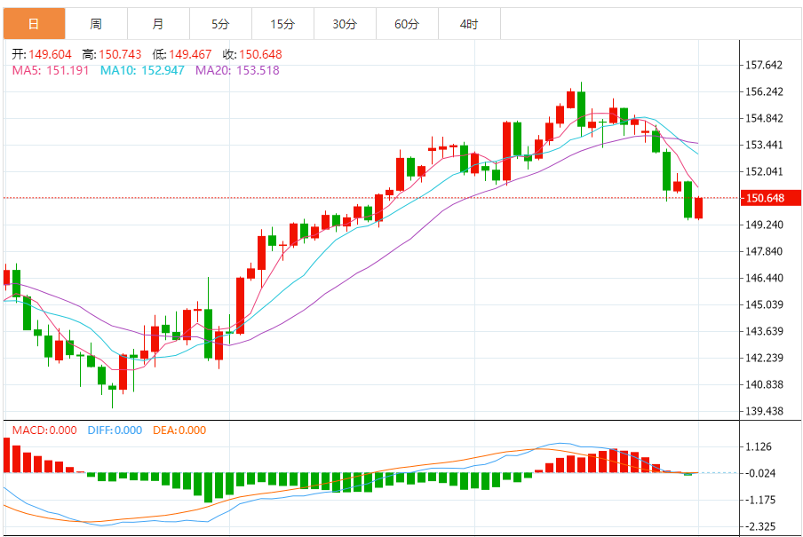 支撑位:150.22 150.33 150.46