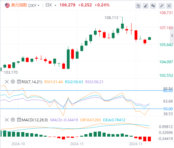 美元指数上周五一度触及低点105.615,但当日收盘位于该位上方。只要守住105.50附近的支撑位,那么未来几个交易时段美元指数可能会涨向107-108。只有当该指数大幅跌破105时,前景才会进一步看空。