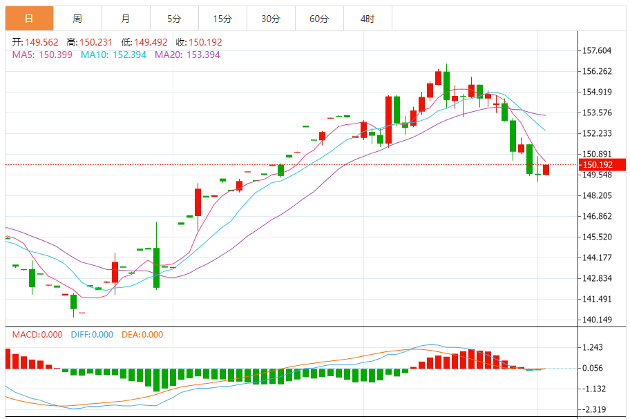 周二(12月3日),美元/日元上涨150.213,暂报150.202,涨幅0.42%。