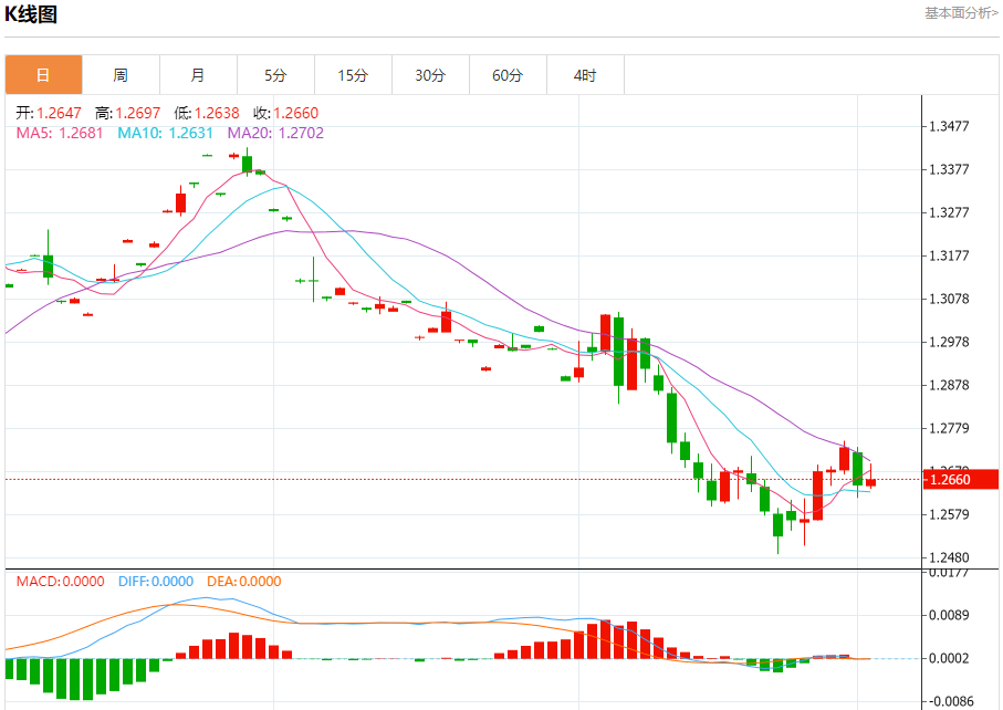 汇价高见1.2697,低见1.2638。上一交易日,汇价收于1.2648。