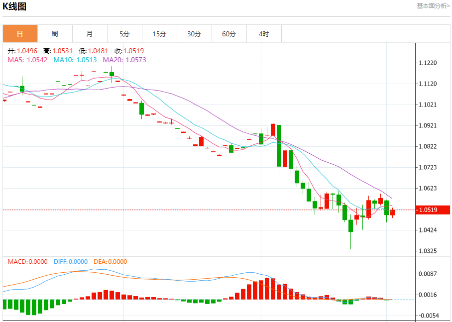 汇价高见1.0531,低见1.0480。上一交易日,汇价收于1.0497。