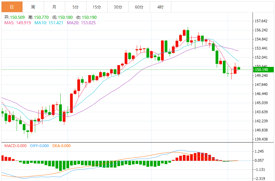 周四(12月5日),美元/日元下跌150.203,暂报150.191,跌幅0.27%。