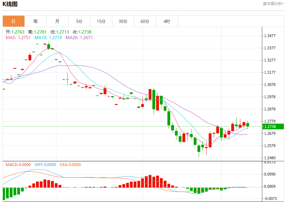 汇价高见1.2781,低见1.2713。上一交易日,汇价收于1.2771。