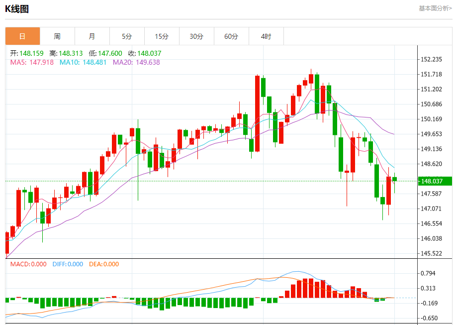 汇价高见148.313,低见147.600。上一交易日,汇价收于148.176。