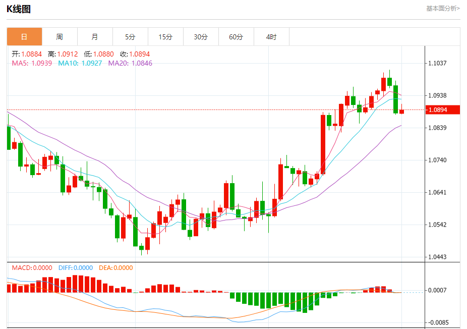 汇价高见1.0912,低见1.0881。上一交易日,汇价收于1.0885。