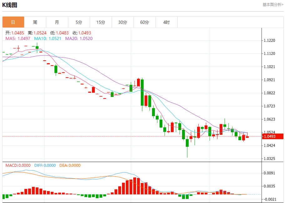汇价高见1.0524,低见1.0483。上一交易日,汇价收于1.0503。