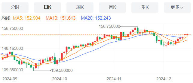 周一(12月16日),美元/日元上涨153.76,暂报153.75,涨幅0.04%。