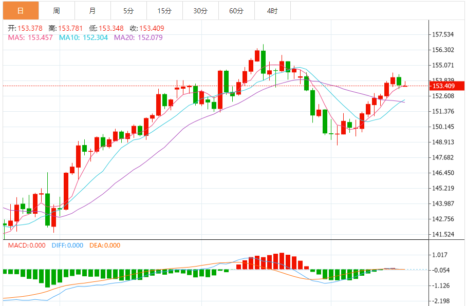 周三(12月18日),美元/日元下跌153.449,暂报153.436,跌幅0.04%。