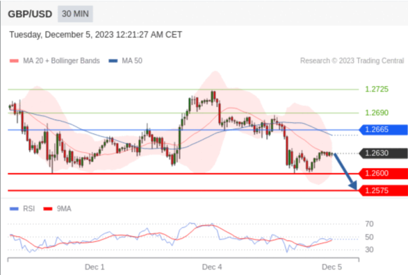 在 1.2665 之下,看跌,目标价位为 1.2600 ,然后为 1.2575 。
